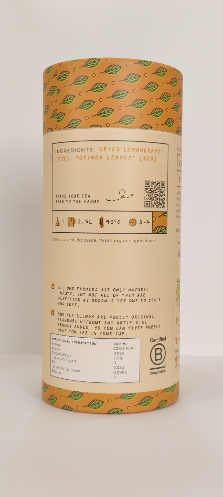 Bonus: It’s ethically sourced in Tanzania, packed by women in Dar es Salaam, and designed for easy composting! The pyramid tea bags are made from cornstarch, and the outer tubes are recyclable.